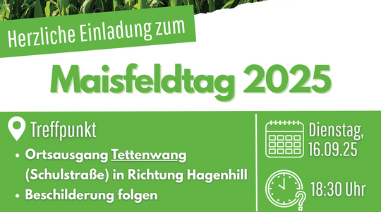 Einladung zum Maisfeldtag am 16.09. in Tettenwang