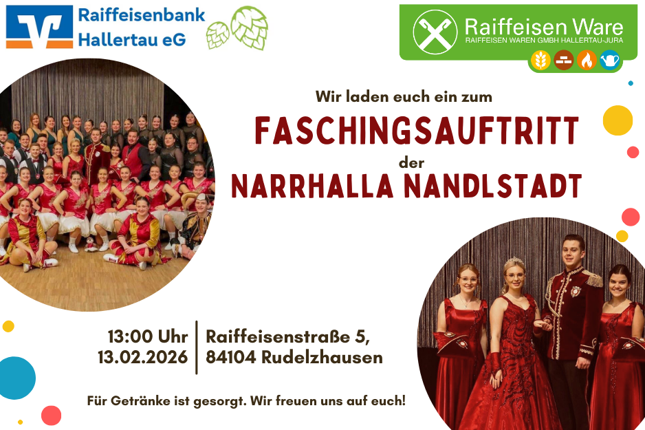 Wir laden euch ein zum Faschingsauftritt der Narrhalla Nandlstadt.
