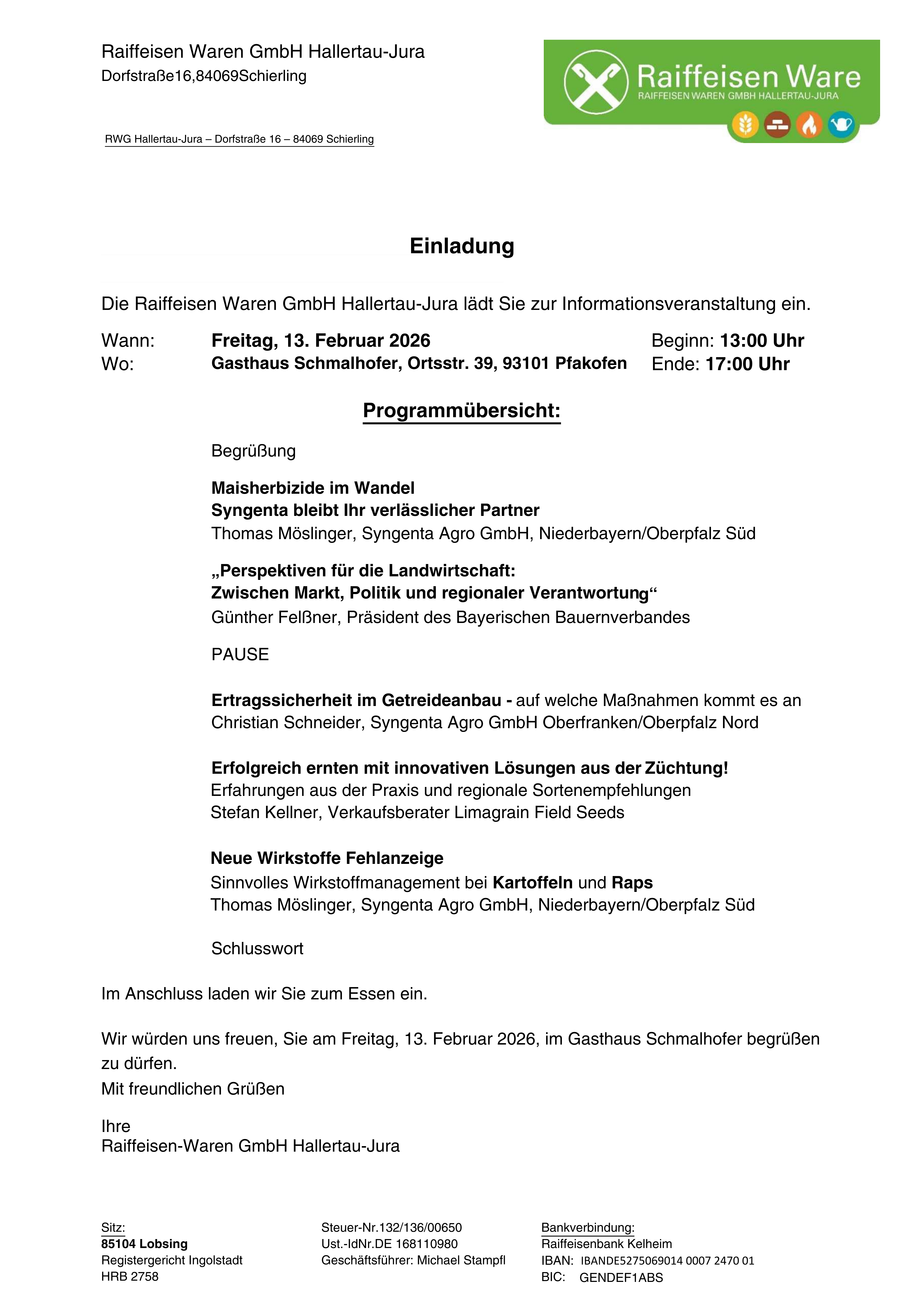 Einladung Infoveranstaltung Inkofen Freitag, 13.02.26