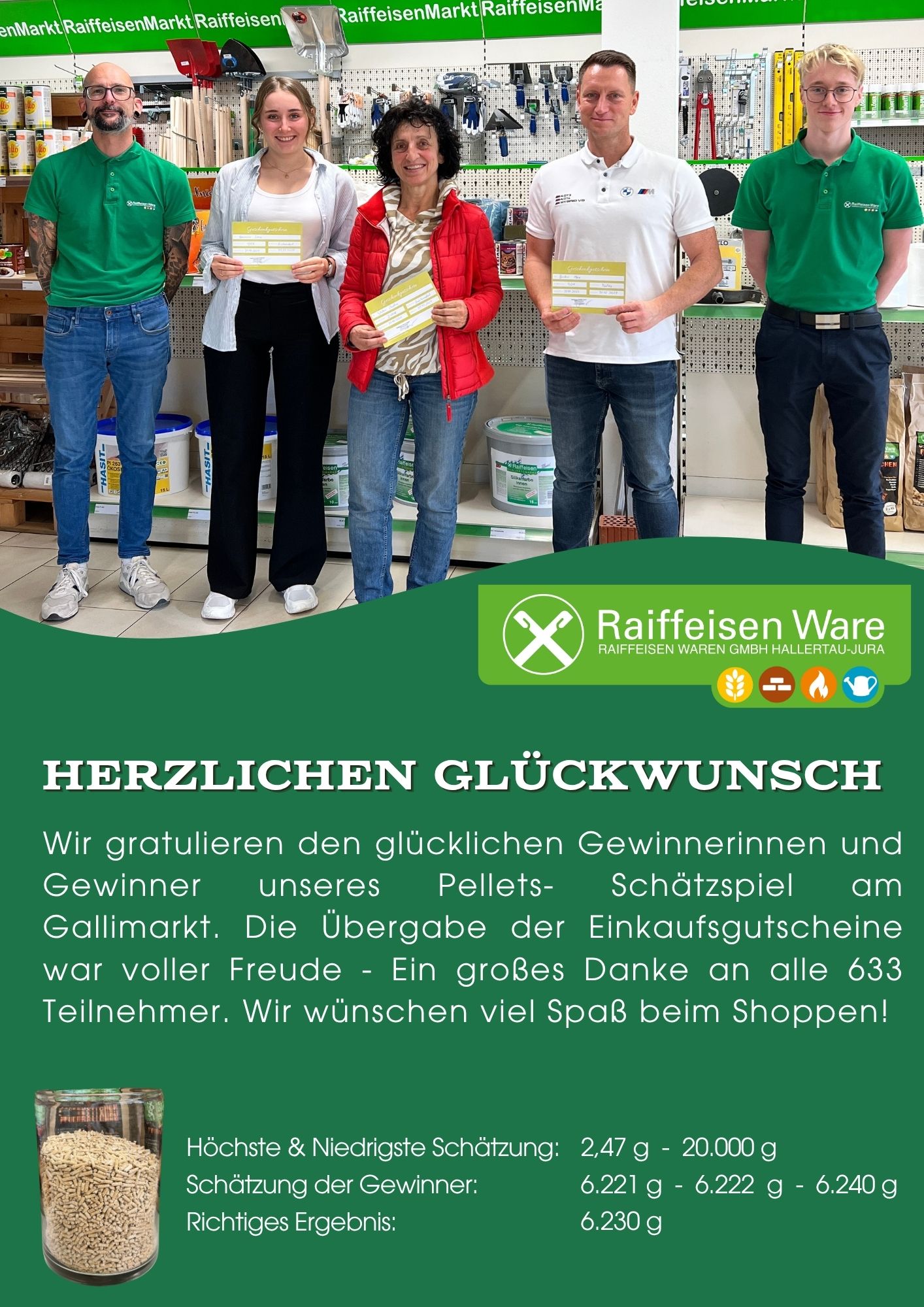 Wir gratulieren den glücklichen Gewinnerinnen und Gewinner unseres Pellets- Schätzspiel am Gallimarkt. Die Übergabe der Einkaufsgutscheine war voller Freude - Ein großes Danke an alle 633 Teilnehmer. Wir wünschen viel Spaß beim Shoppen!